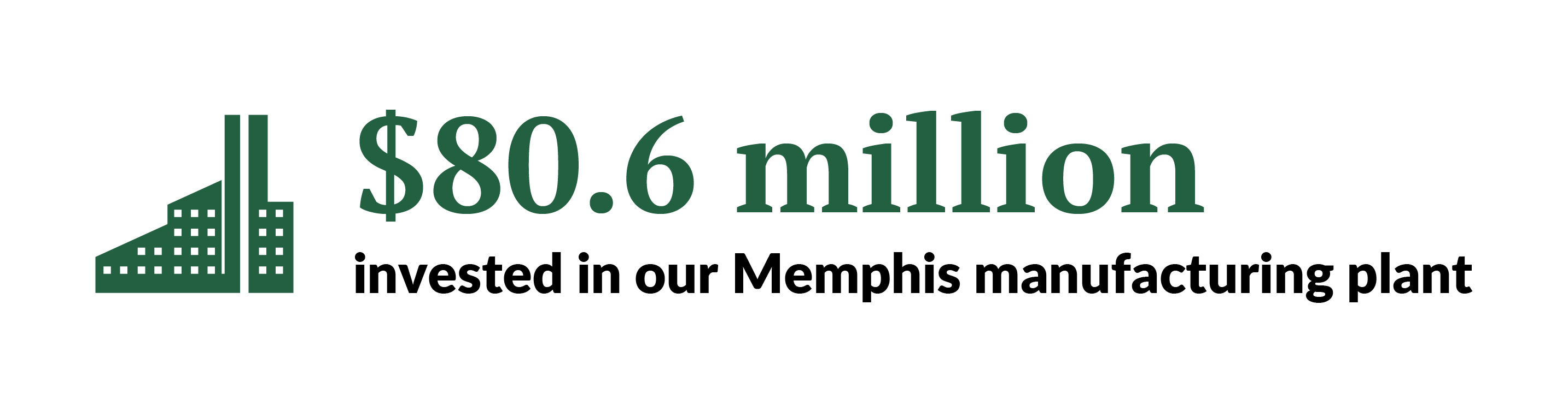 We are investing $80.6 million into our Memphis manufacturing plant to expand and update our production capacity. As part of this increased investment, we’ll be able to save resources in a variety of areas, including: